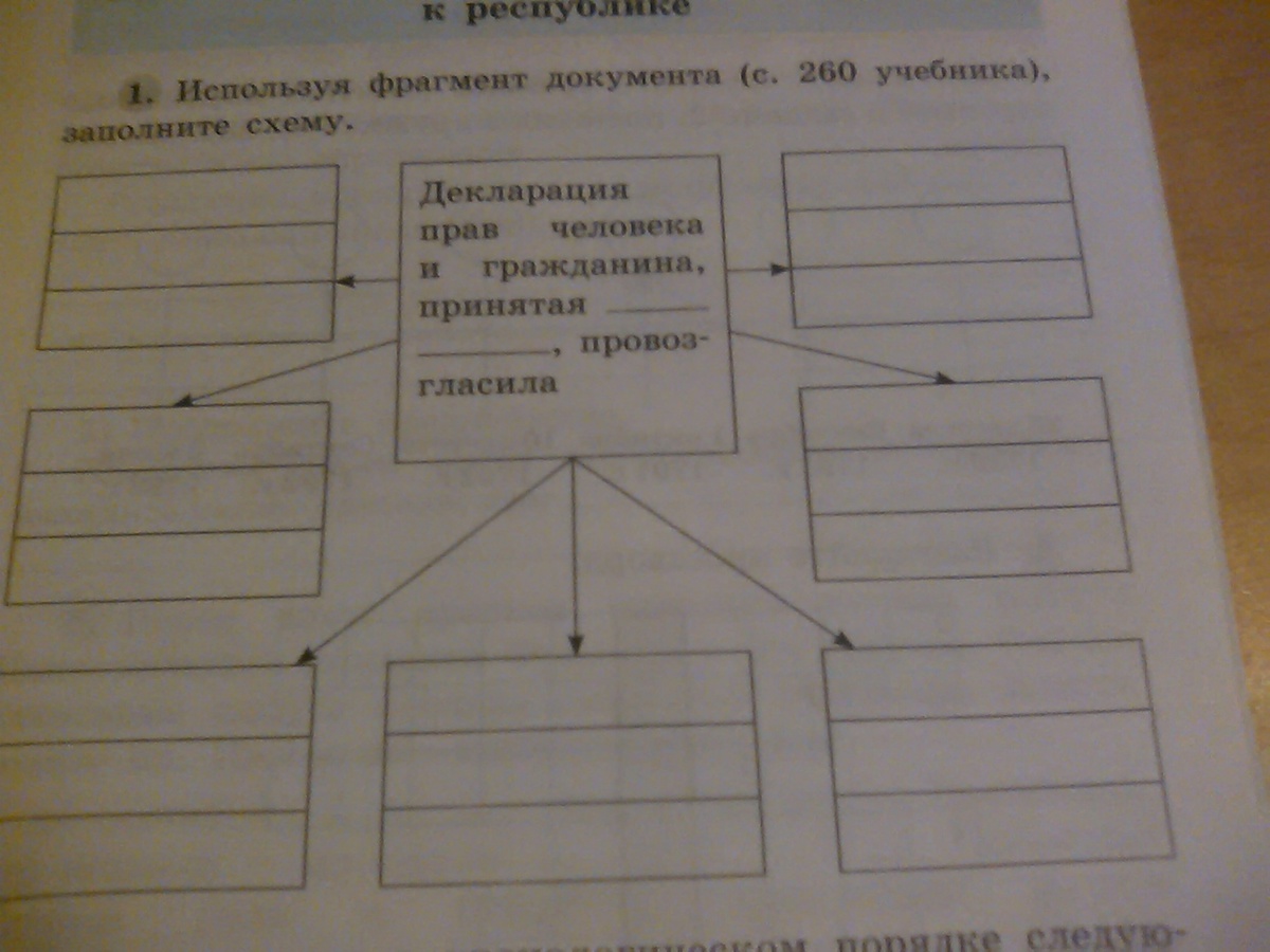 Французская революция. От монархии к республике. Используя фрагмент документа страница 260 учебника заполнителя схему.