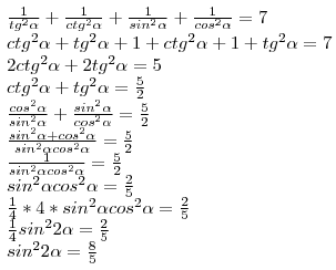 a2=(2,5+1,5)/2=2⇒tg²a=2⇒tga=+-√2⇒a=+-arctg√2+πn