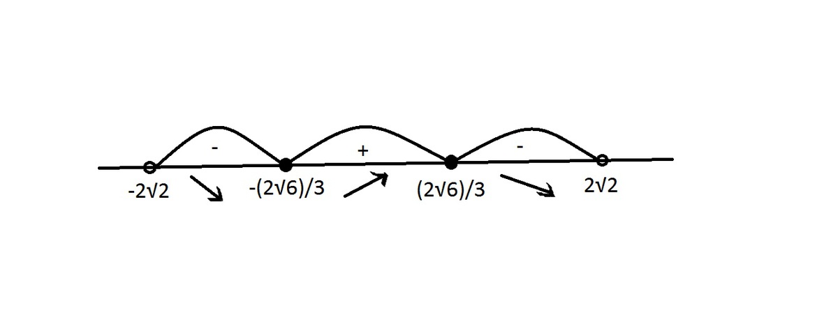 На промежутках, в которых производная функции >0 функция возрастает, где <0 - убывает =>