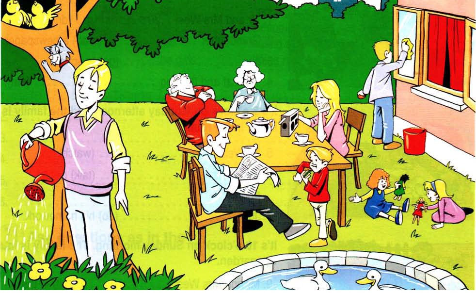 Напишите пожалуйста кто что делает на картинке на английском языке. Даю 70 баллов!!!