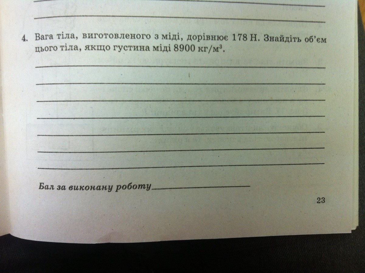 Вага тіла, виготовленого з міді =178 Н(ньютон) . Знайдіть об'єм цього тіла, якщо густина міді 8900кг/м3