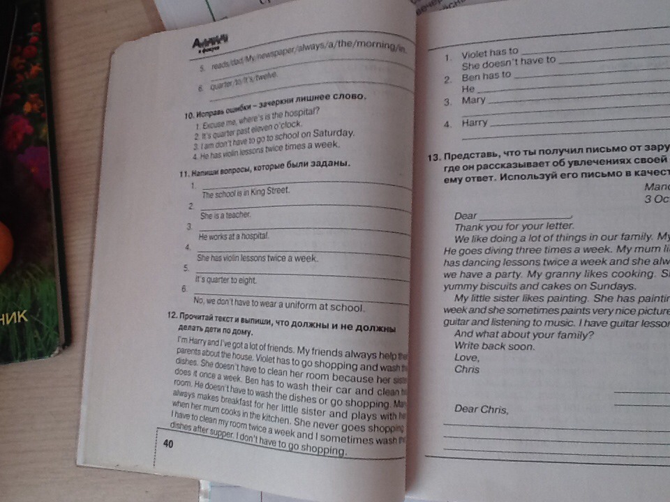 4.Harry has to clean his room twice a week,sometimes wash dishes after supper.