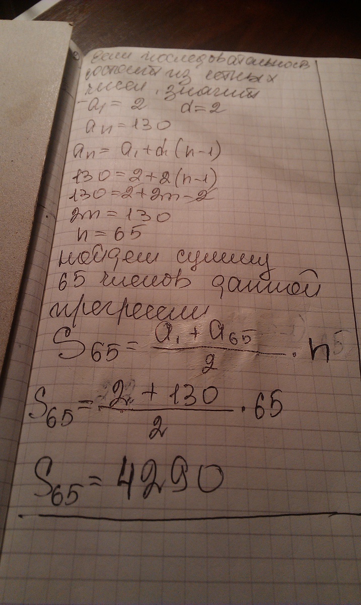 S=n*(n+1):2. Вместо n подставляем 130: (130*131):2=8515