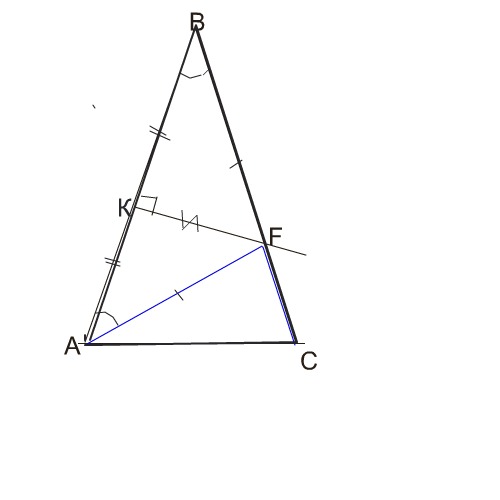Отметим середину АВ точкой К. Поскольку КF - срединный перпендикуляр, АК=ВК.