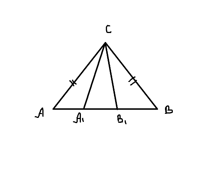 1) Рассмотрим треугольник А1В1С и треугольник АВ1С. они равны по 2 признаку равенства треугольников (по сторону и двум прилежащим к ней углам)