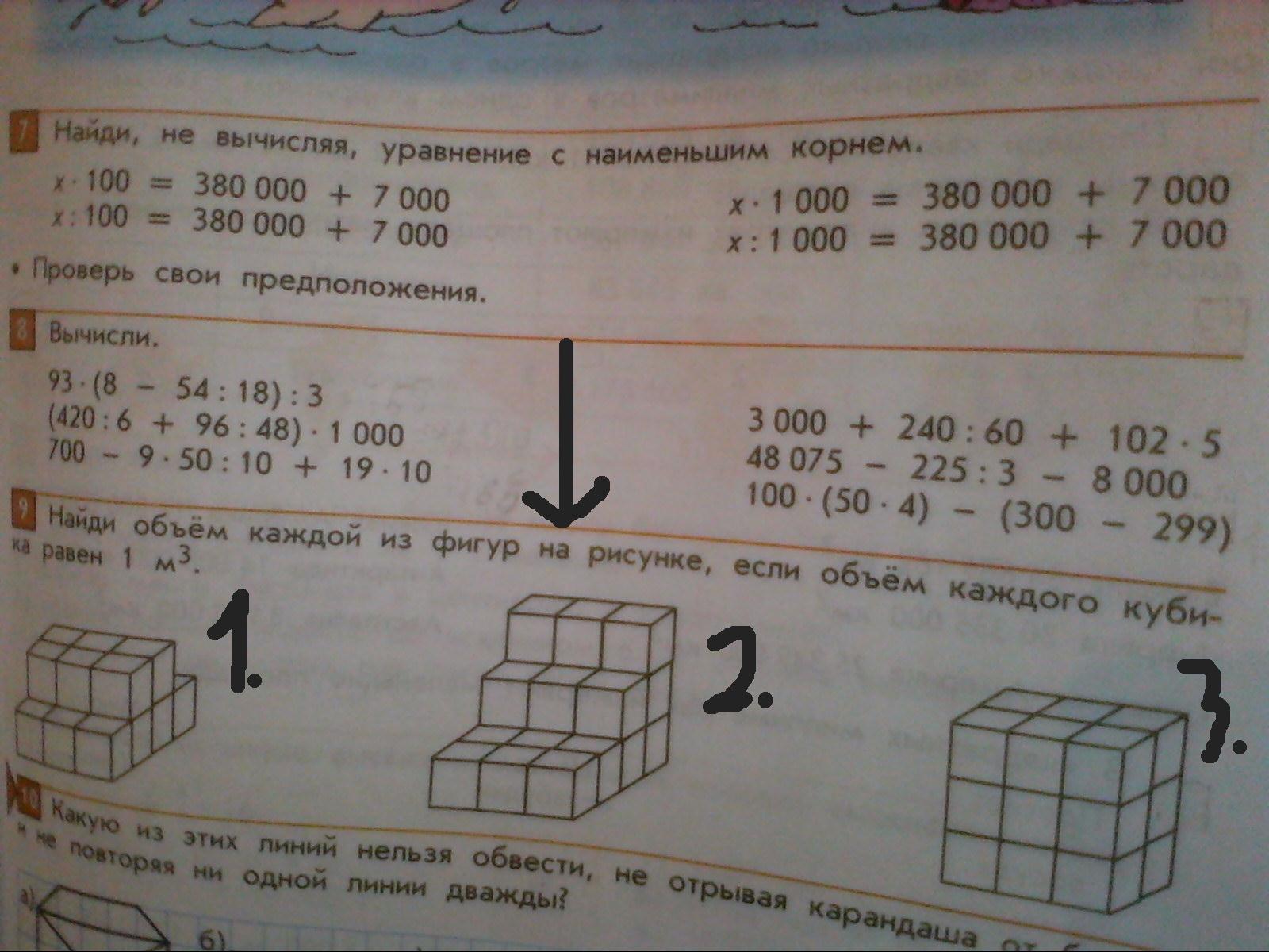 у меня есть свои варианты))хочу проверить) прошу помогите )вот задание:Найди объем каждой из фигур на рисунке,если объем каждого кубика равен 1м кубический)вот фото )1 фигура,,,2 фигура,,,,3 фигура и само задание покажу)