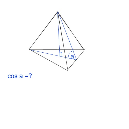 Помогите пожалуйста. Не получается правильно рисунок построить. Все ребра правильной треугольной пирамиды равны между собой. Найдите косинус угла между боковой гранью и плоскостью основания.