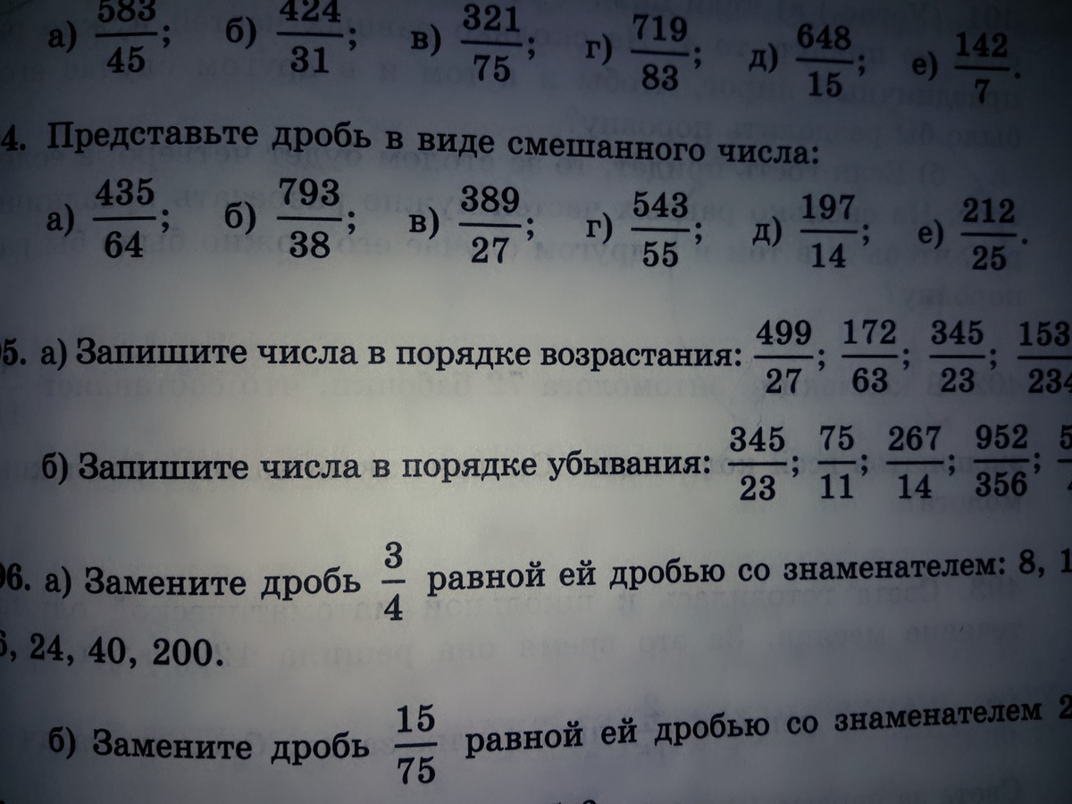 б) запишите числа (дроби) в порядке убывания:345/23,75/11,267/14,952/356,51/4.