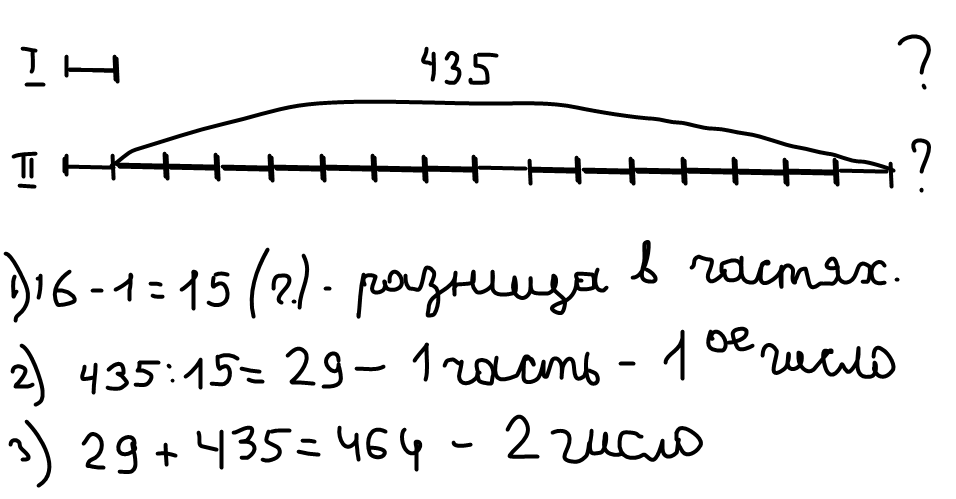 Решите задачу: Найдите два числа если известно что одно из них в 16 раз меньше другого а их разность равна 435