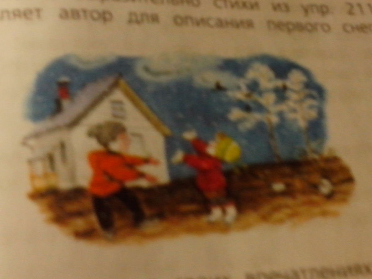 Пришла зима. Когда я проснулась, то увидела снег. Он был пушистым, мягким и белым-белым. Я быстро выбижала во двор и позвала моего друга Ваську(можно другое имя). Мы долго бегали и смеялись, пока нас не позвала бабушка, на обед. На обеде мы ели вкусные горячие пирожки с горячим чаем.