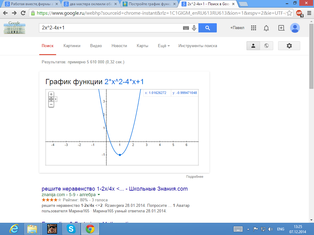 вершина равна -b/2a x0=1 y0=-1, соответственно строим относительно этой вершины простую пораболу точки у нее такие x=1,2,3 y=1,4,9 щас скину ссылку посмотришь как выглядит