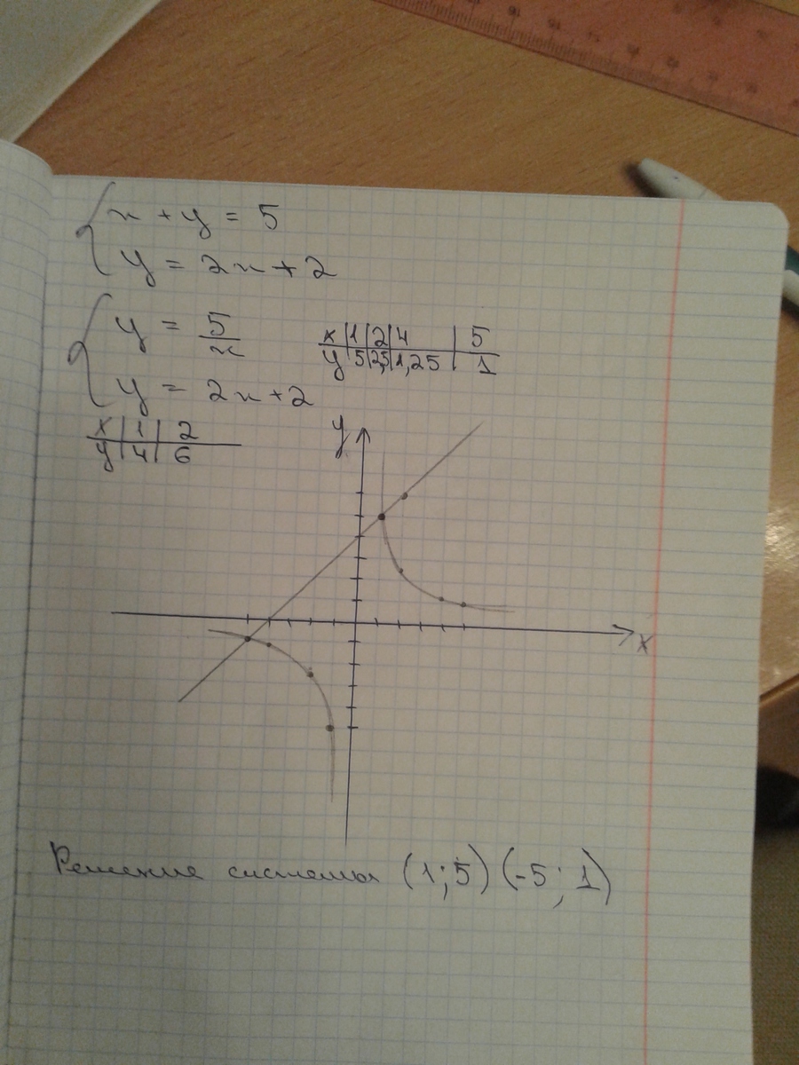 Ответ это точки пересечения графиков. (Я их записала в скобочках)