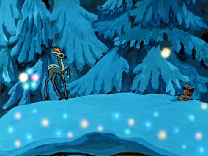 а если внешне, то серебряное копытце предстает перед нами как маленький олененок необычно-серого цвета, с желто-золотого цвета рогами и серебряными копытами