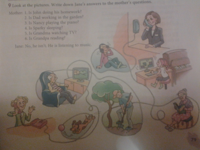 5. No she isn't . She is reading a book .