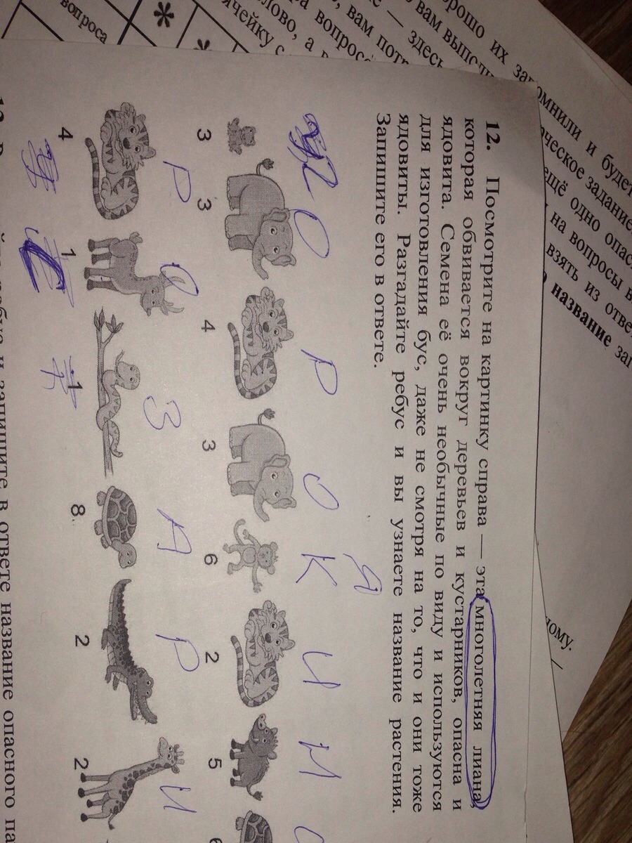 После слона идет не обезьяна , а мартышка , тогда шестая буква Ш. Тогда лиана называется горошина розарии (или другое название ее -глаза краба).