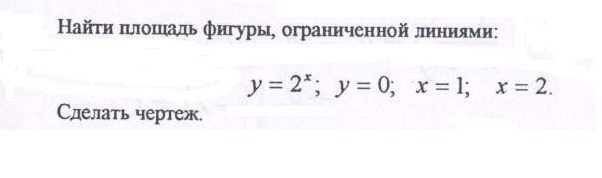 Площадь фигуры равна определённому интегралу от 1 до 2 от функции y1 - y2 (разность данных функций)