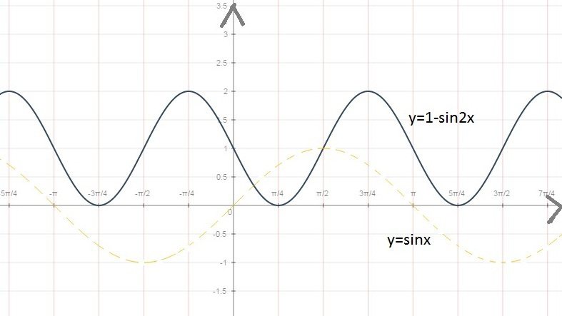 1) сжимается в 2 раза по Оси ОХ, поскольку аргумент в sin - 2x