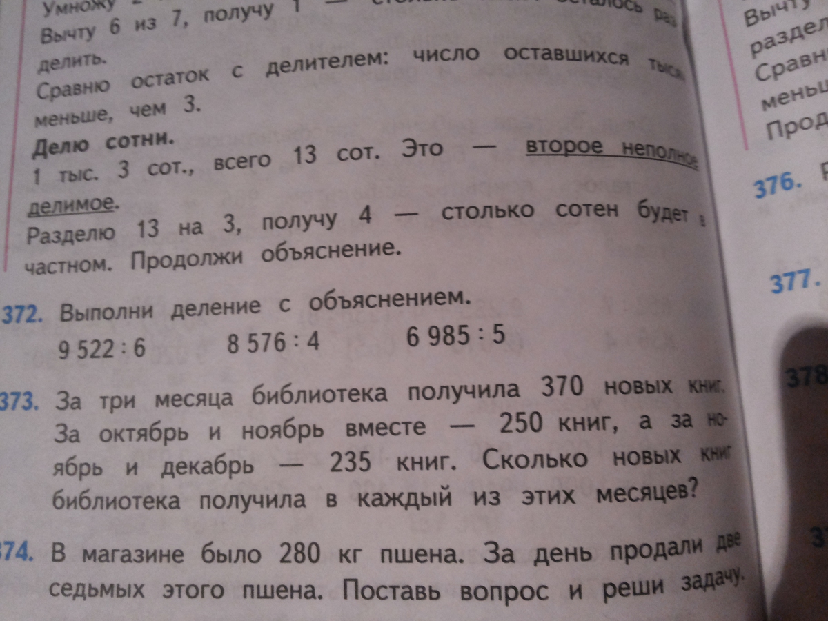 За три месяца библиотека получила 370 новых книг. За отябрь и ноябрь вместе-250 книг, а за ноябрь и декабрь -235 книг. Сколько новых книг библиотека получила в каждый из этих месяцев? 4 класс страница 82 задача 373.,