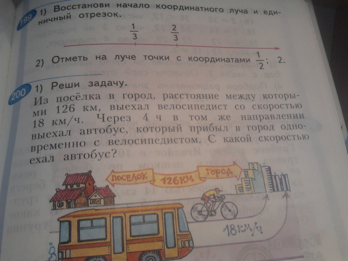 1)18*4=72(км)-велосипедист проехал за 4 часа 2)126-72=54(км)-осталось проехать велосипедисту 3)54/18=3(ч)-осталось проехать велосипедисту значит автобусу 3 ч 4)4+3=7(ч)-всего времени надо проехать велосипедисту 5)126/3=42(км/ч)-автобусу а 3 часа потому что что велосипедисту надо было ехать 7 часов а автобусу 3