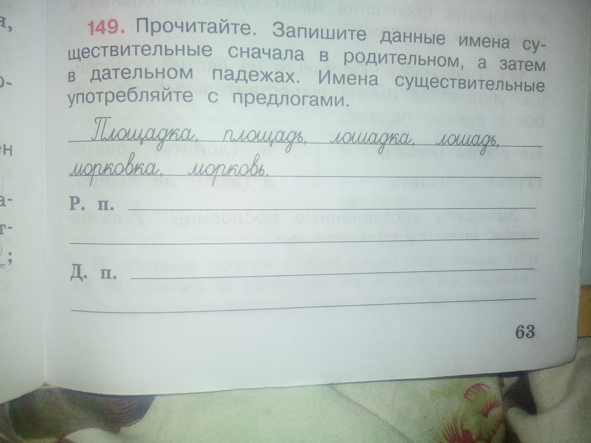 Д.П. площадке , площади , лошадке , лошади , морковке , моркови.
