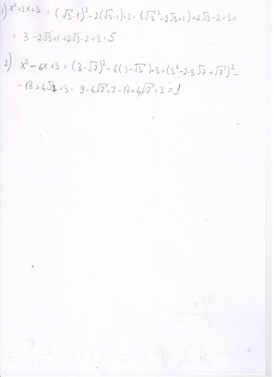 2)((3-√7)²-6(3-√7)+3=9-6√7+7-18+6√7+3=1