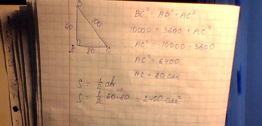Катет прямоугольного треугольника равен 60 см, а гипотенуза равна 100 см.