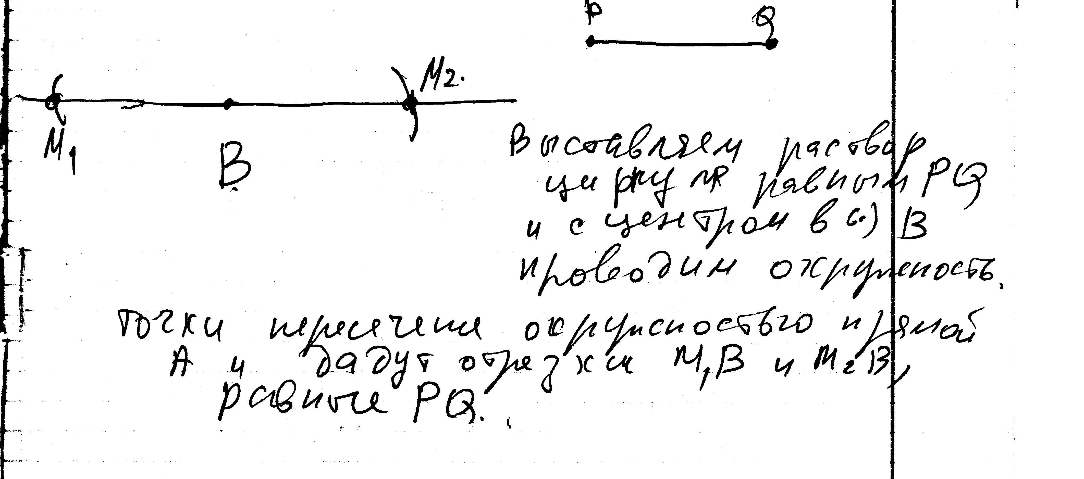 Дана прямая а точка b не лежащая на ней pq постройте точку м на прямой а так чтобы было равно pq