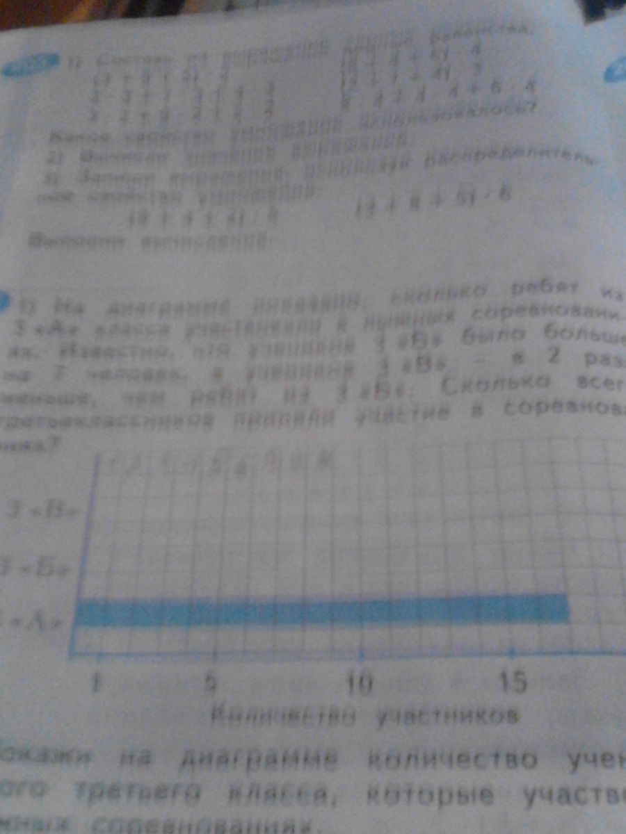, на диаграмме показано сколько ребят из 3 а класса участвовали в лыжных соревнованиях известно что у учеников 3 б класса было больше на 7 человек, а ученику 3 в 2 раза меньше чем ребят из 3 на 2 сколько всего 3 классников приняли участие в соревнованиях