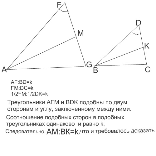 триугольниу AFG подобен BDC .Докажите что отношение длин медиан проведеных из А и В равно отношению подобия треугольников