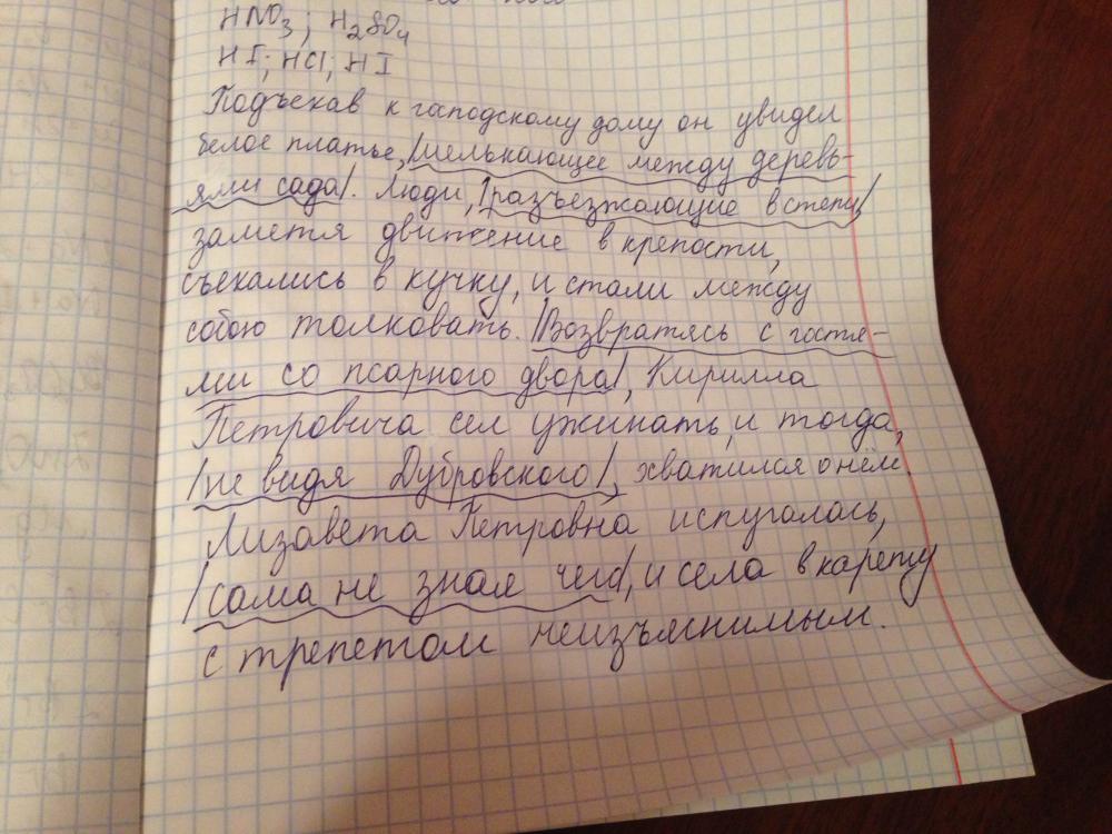1. Под..ехав к господскому дому он увидел белое платье мелькающее между дерев..ями сада.2. Люди раз..езжающие в степи заметя движение в крепости с..ехались в куч..ку и стали между собою толковать.3. Возвратясь с гост..ями со псарного двора Кирила Петрович сел ужинать и тогда не видя Дубровского хватился о нем.4. Лизавета Петровна испугалась сама не зна