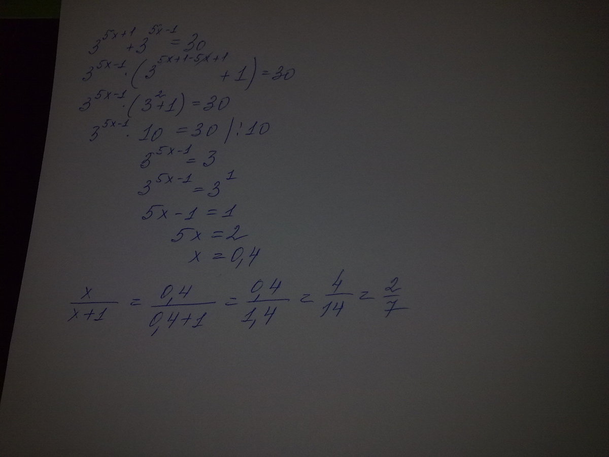 Найдите x/x+1 где x корень уравнения 3^5x+1+3^5x-1=30 Этот пример из раздела показательные уравнения