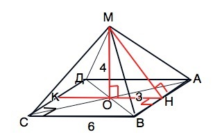 Основание - квадрат со стороной 6 см. Высота МО=4 см.