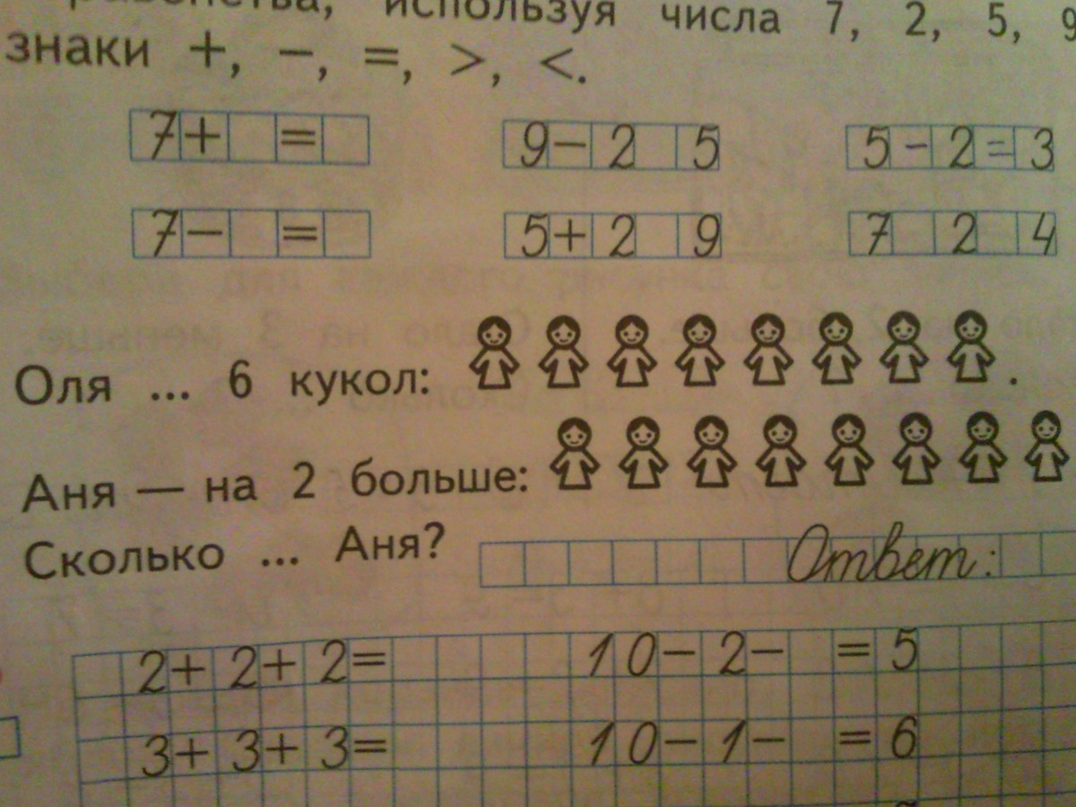 оля 6 аня на 2 > чем у оли решение6+2=8