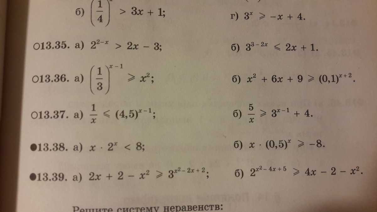 мордкович проф. уровень. показательные неравенства. с 13.35 хотя-бы 1 пример ,покажите как решать. буду благодарен