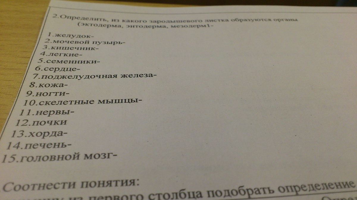 Определить, из какого зародышевого листка образуется органы (эктодерма,мезодерма,энтодерма)