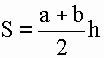 1.Площадь трапеции равна произведению полусуммы ее оснований на высоту (a, b, h).
