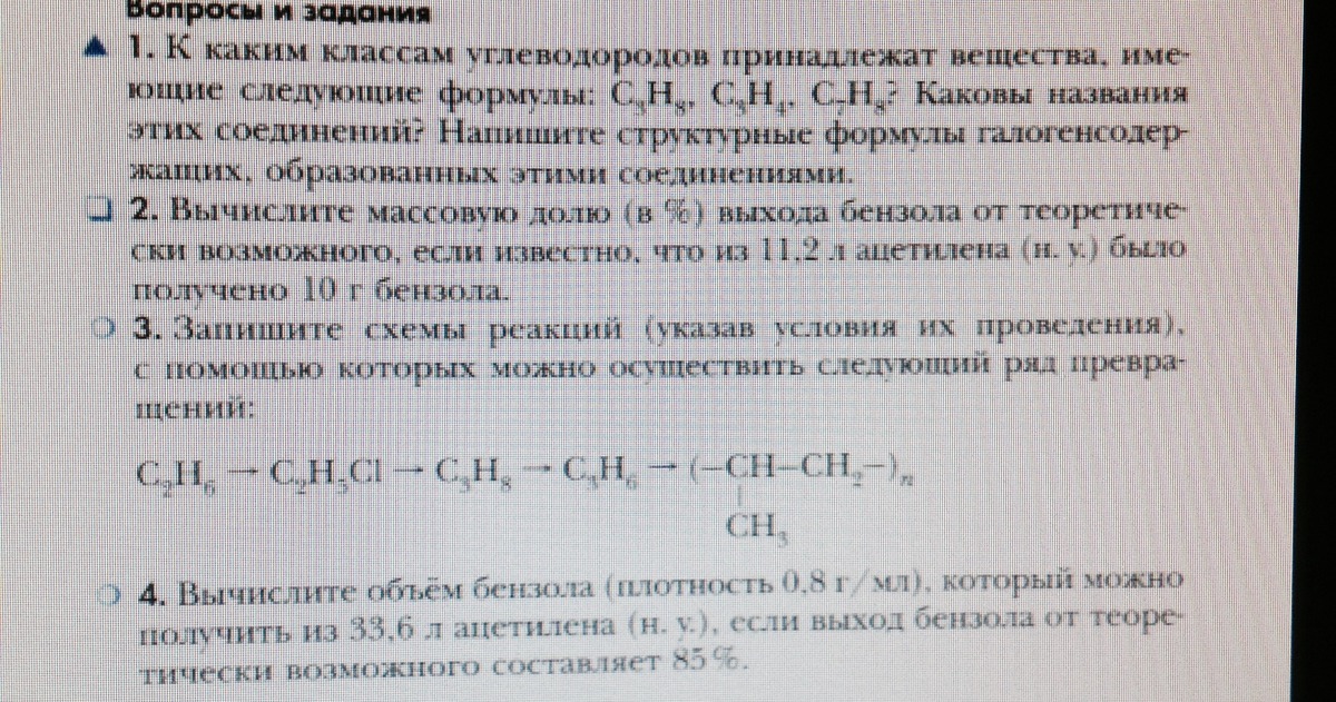 №2Дано:пишем дано решение :1)3С2H2=(+C и температура)= С6Н62)ню(кол во моль)с2н2=11.2 22.4= 0.5 моль 3 .5=1хх=(примерно)0.17моль3) масса теоритическа с6н6= 0.17*78(молярная масса в-ва)= 13.26 гр 4)масса практическая=10гр 13.26100=10хх=(примерно)75.4 процента