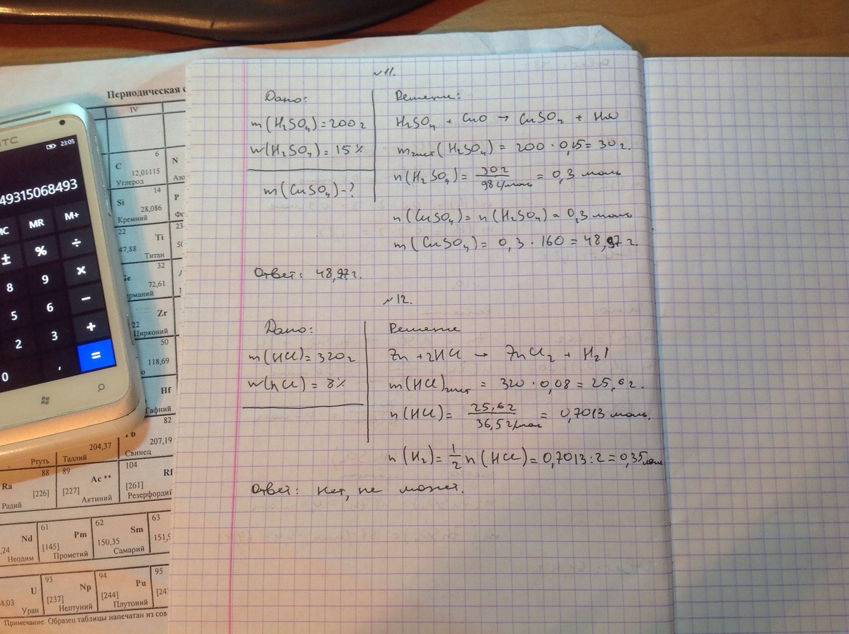 12. Может ли выделиться 1 моль водорода, если цинк обработать 8%-ной соляной кислотой массой 320 г?