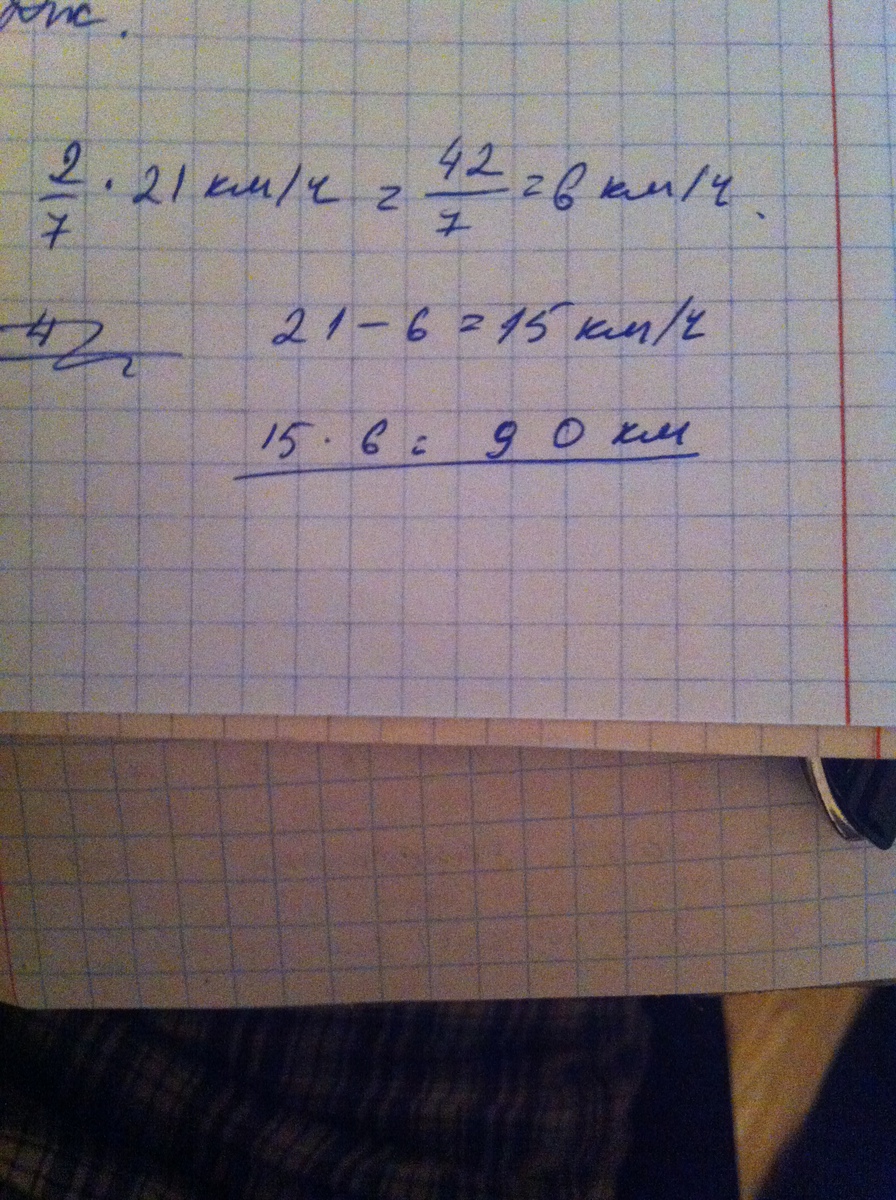 Сколько км пройдёт теплоход за 6 часов, двигаясь против течения реки, если его собственная скорость 21 км/ч, а скорость течения составляет 2/7 собственной скорости теплохода?