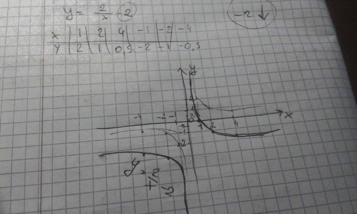 y=2/x - 2 - гипербола