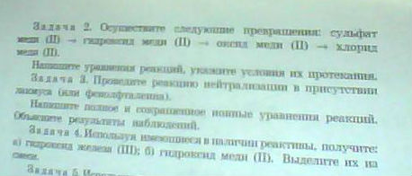 № 2. Осуществите следующие превращения:сульфат меди(2)-->оксид меди (2) -->хлорид меди (2)