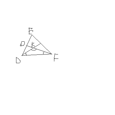В треугольнике DEF угол D=76градусов, угол F=60 градусов. Найдите угол между биссектрисами углов D и F
