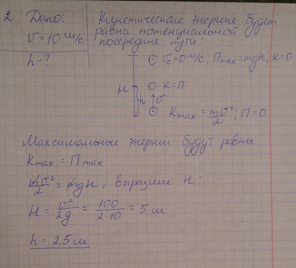 2.Камень брошен вертикально вверх со скоростью 10 м/с. На какой высоте кинетическая энергия камня равна его потенциальной энергии?