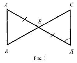 Докажите равенство треугольников АВЕ и ДСЕ на рисунке 1, если АЕ = ЕД, ∠А = ∠Д. Найдите стороны треугольника АВЕ, если ДЕ = 3 см, ДС = 4 см, ЕС = 5 см.
