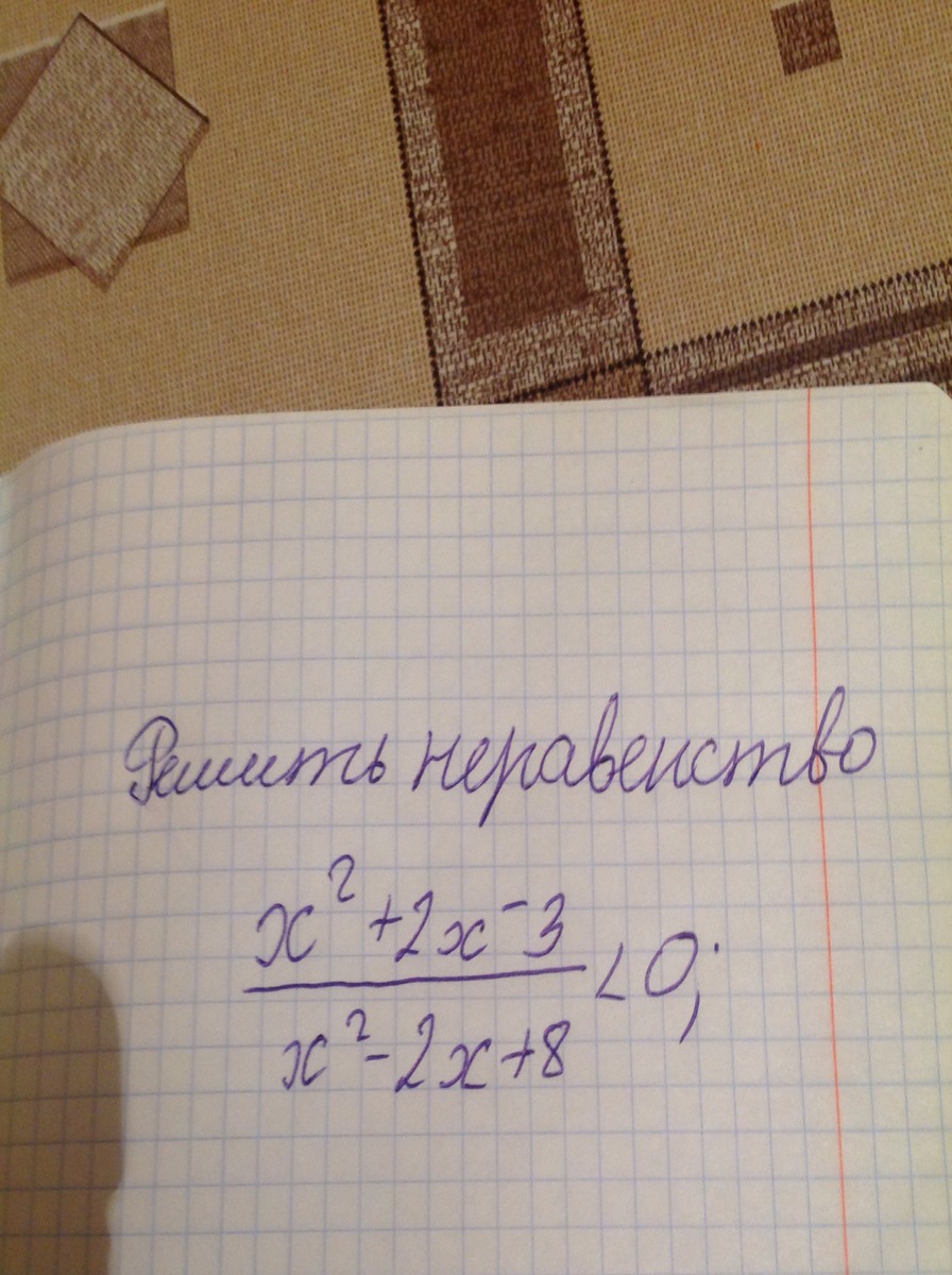 Значит и дробь (х²+2х-3)/(х²-2х+8) < 0 при х∈(-3;1)