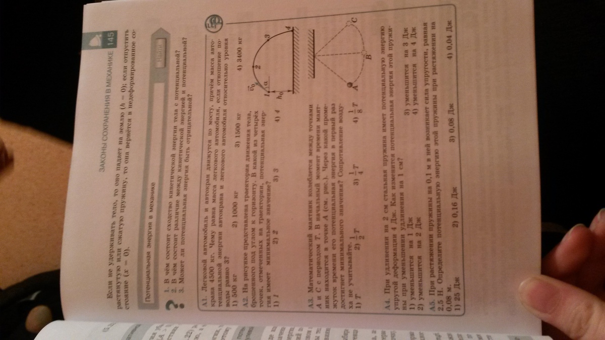 Во втором: четвертый вариант, потому что потенциальная энергия меньше там, где меньше высота, а она у тебя наименьшая в точке 4.