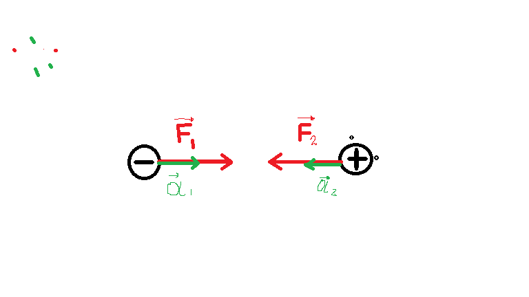 при взаимодействии силы равны по величине и направлены в противоположные стороны. Направления ускорений совпадают с направлением сил