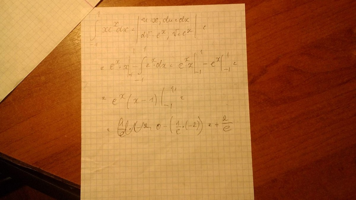 Решите пожалуйста определенный интеграл (сверху интеграла 1, снизу -1) xe^xdx