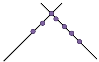 Таня начертила две прямые линии.На одной из них отметила 3 точки,а на другой- 5 точек.Всего было отмечено 7 точек.Как она это сделала?