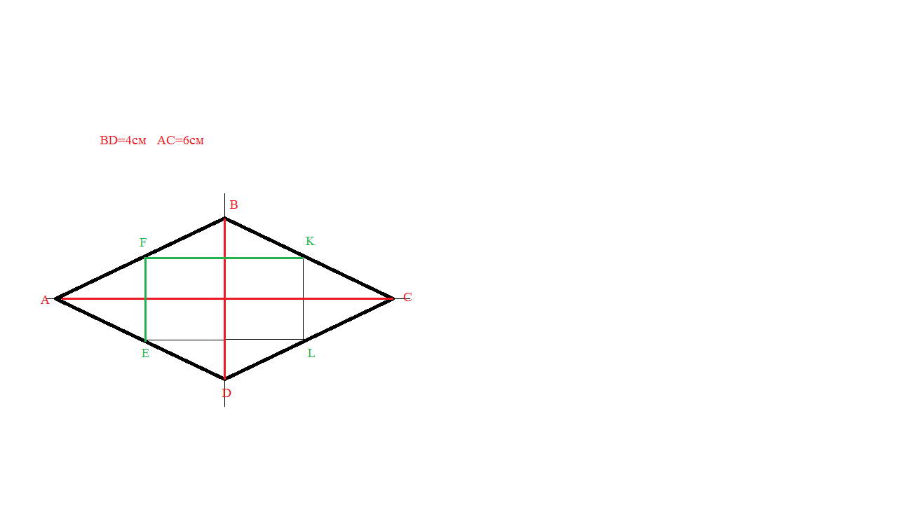 Найдите стороны четырехугольника, вершинами которого есть середины сторон: ромба с диагоналями 4 см и 6 см